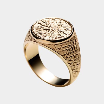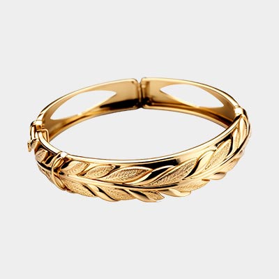 It presents a wrist-hugging oval of gold, punctuated with functional screws.